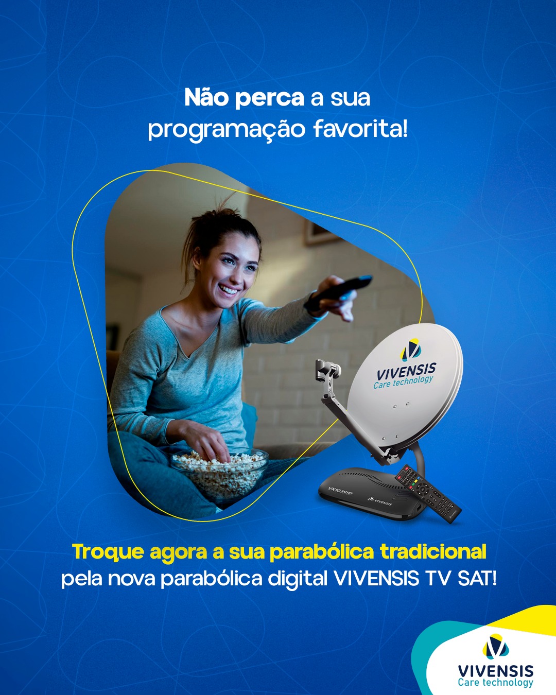 Com a VIVENSIS é assim: você é livre para sintonizar os canais da banda KU em alta definição e com imagem e som digital.